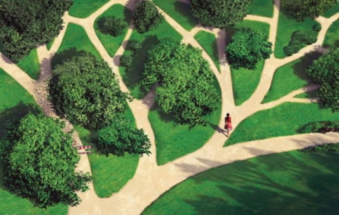 Compreendo, vale observar, que a liberdade da vontade não poder ser coerentemente pensada através de conceitos (uma vez que, em última instância sempre caímos ou no determinismo ou no acaso) não significa que sua possibilidade esteja negada. Mas não consigo desistir da ideia de que a metáfora da bifurcação e de caminhos escolhidos é uma invenção que só nos serve para nos gerar culpa e medo.