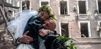 Nos escombros da guerra, médico e enfermeira se casam em Kharkiv,...