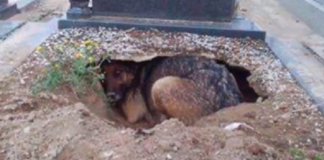 Fidelidade Eterna: cão cava um buraco ao lado do túmulo de...