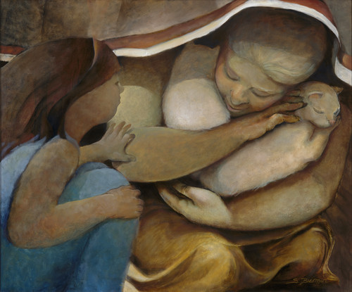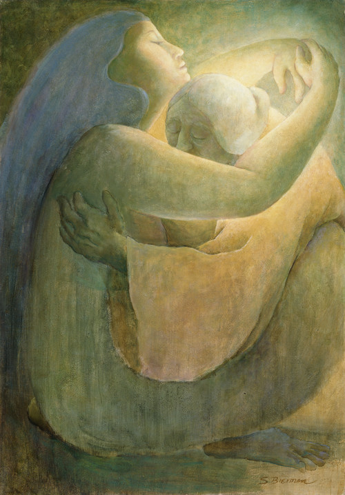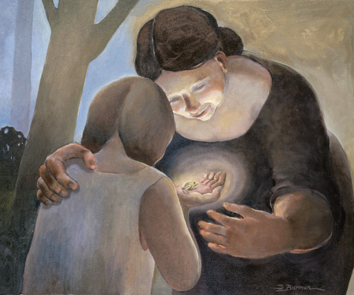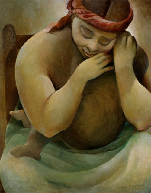 “O importante no meu trabalho é que eu pinto intuitivamente , sem modelos ou fotografias para influenciar a espontaneidade das minhas percepções internas. Embora eu me aproxime da tela de forma muito parecida com um pintor abstrato, eu gosto do desafio adicional do uso da figura humana. Conscientemente trabalho com técnica e composição, mas meu inconsciente acrescenta um elemento de anseio interno para a tranquilidade, força e o bem estar- dependendo de como me sinto, muitas vezes retrato mulheres com seus pés descalços na terra e grandes mãos de inquietas . As mulheres podem estar embalando uma criança , recebendo consolo de um gato ou lavando os cabelos: são reflexos de minha própria vida . As mulheres idosas poderiam ser a minha avó. Eu também sou o gato ou o bebê . De certa forma, toda a pintura é um auto-retrato do que trazemos por dentro. Os homens também entram em minhas composições . Eu muitas vezes exagero na distorção das formas e linhas para melhorar a fluxo total e composição”