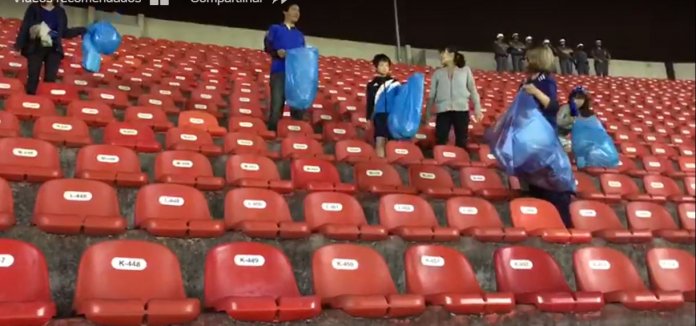 Ao portal UOL, o torcedor japonês Hirokazu Tsunoda disse: “Fazemos sempre isso em todos os estádios. (…)É uma forma de agradecer por termos assistido ao jogo e também de manter o local limpo para as pessoas que forem utilizar esse espaço depois”, completou Yoichi Hashimoto, que veio ao Brasil especialmente para assistir à competição.