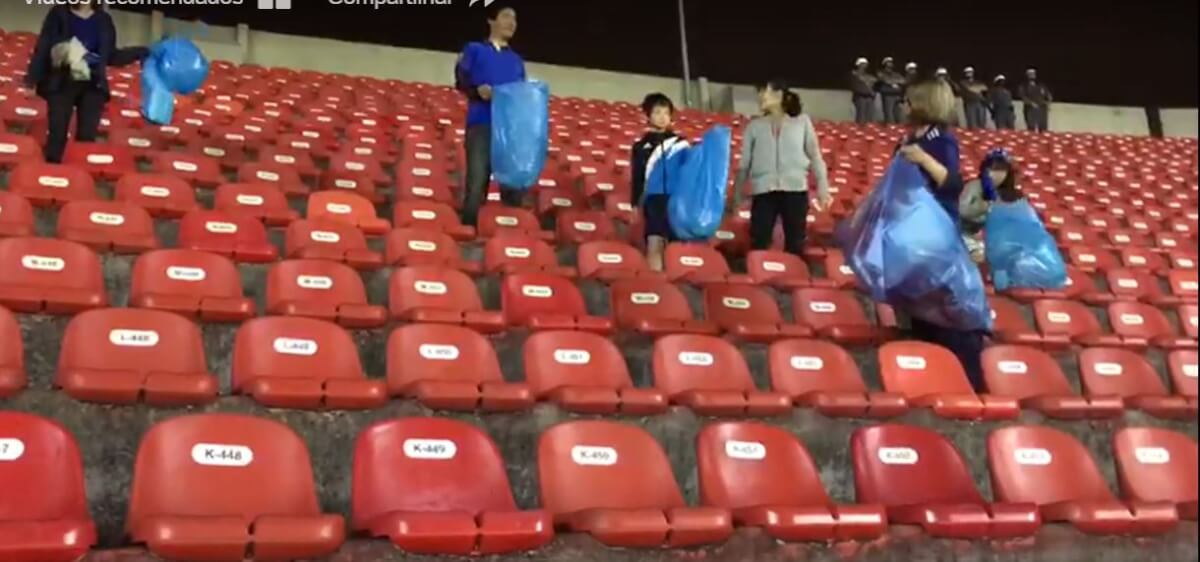 Ao final da partida de ontem à noite, 17, entre Japão e Chile – na qual o time chileno saiu vitorioso com um placar de 4 a 0 – , a torcida japonesa deu uma aula de civilidade.
