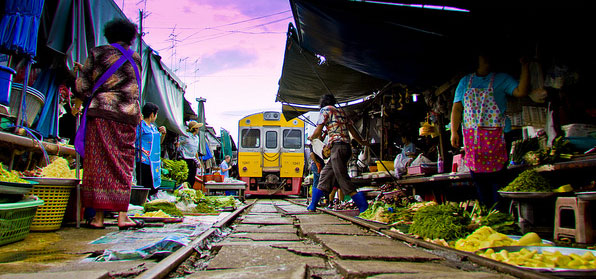 “The Railway Maeklong” , também conhecido como o Mae Klong Railway, é uma ferrovia que se estende por cerca de 67 km (42 milhas) entre Wongwian Yai, Bangkok, e Samut Songkhram, na Tailândia.