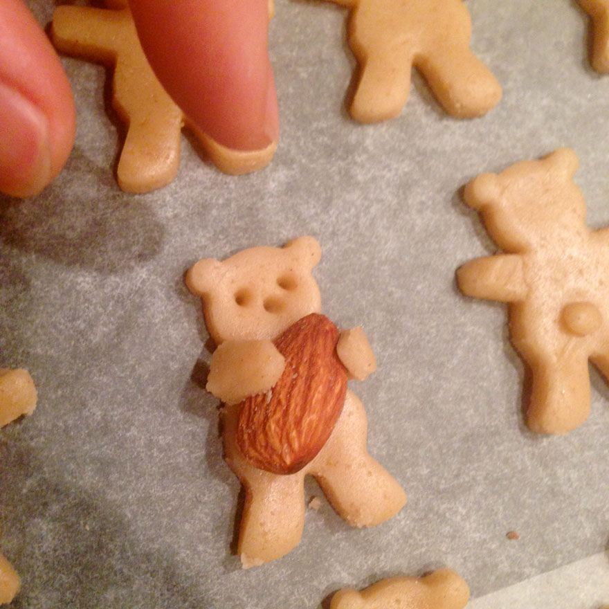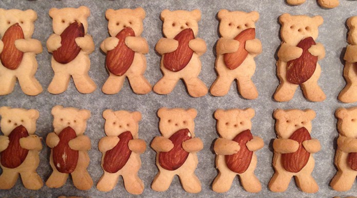 Seus biscoitos em forma de ursinhos ganham vida ao serem assados segurando nozes saborosas perto de seus corações.