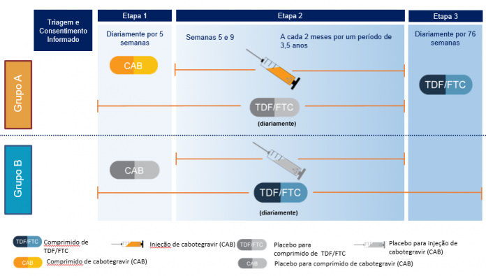 O objetivo do estudo é saber se a injeção a cada oito semanas é segura e se é tão eficaz para prevenir o HIV quanto a medicação oral atualmente utilizada para Profilaxia Pré-Exposição (PrEP). Hoje, a PrEP oferecida pelo Sistema Únicos de Saúde (SUS) é uma combinação de drogas na forma de comprimidos.