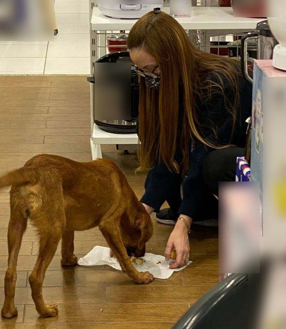 A vendedora contou ainda que não tinha ração naquele momento para alimentá-lo, então pegou o único alimento que tinha levado para o café da manhã, uma broa, e deu ao cachorrinho.