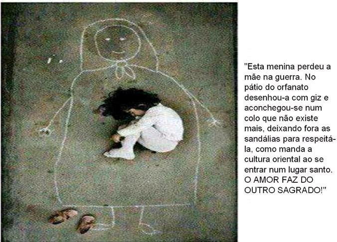 Deitada em um frio pátio de cimento, a menina que teria perdido a mãe na guerra e hoje moraria em um orfanato, teria desenhado a mãe com um pedaço de giz.