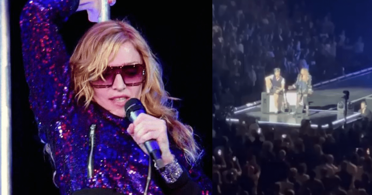 Durante sua Celebration Tour em Los Angeles, EUA, Madonna encontrou-se em uma situação constrangedora no último final de semana. Enquanto se apresentava para uma multidão fervorosa, a icônica cantora chamou a atenção de um fã que parecia estar sentado durante seu show.