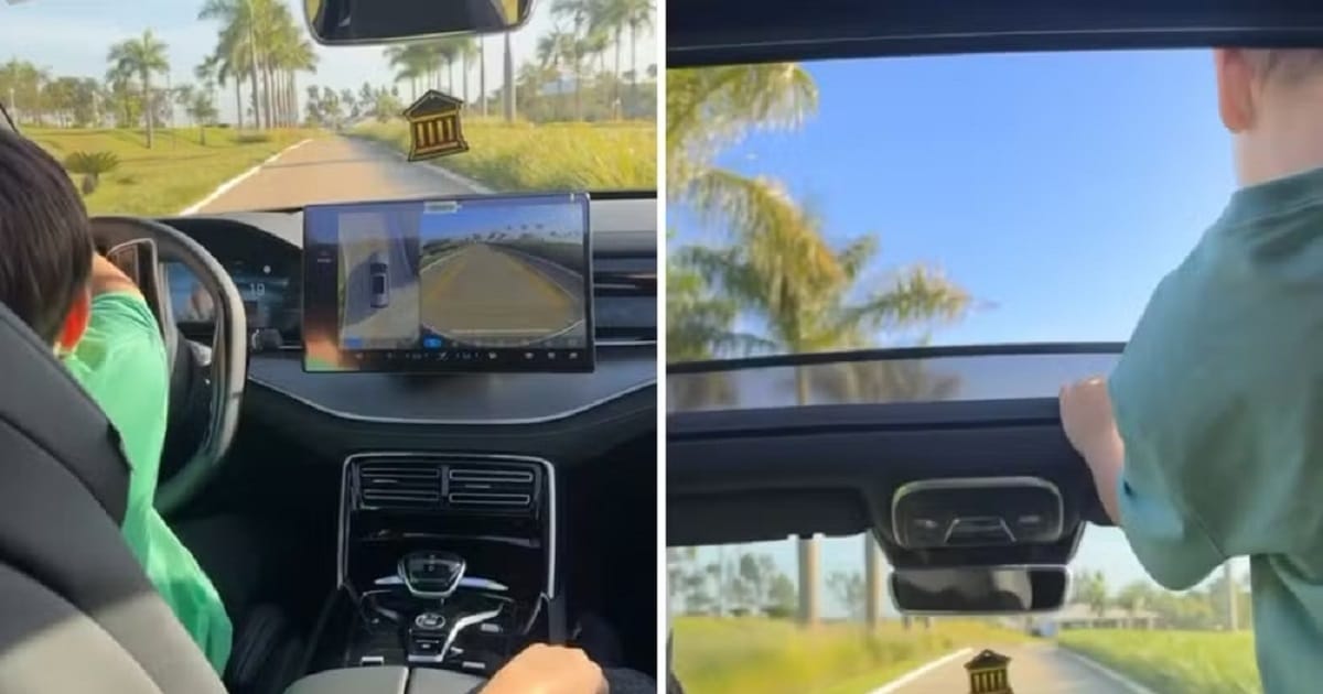 No vídeo publicado por Andressa na internet, Gabriel aparece dirigindo o carro. Durante o “passeio”, seu irmão mais novo, Samuel, de 5 anos, chega a ficar em pé no assento e colocar a cabeça para fora do teto solar. Andressa escreveu na legenda: “7 ou 18 anos?”, de forma descontraída.