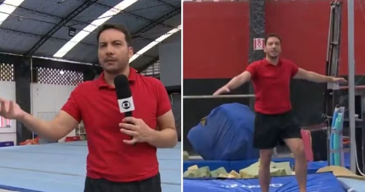 Vídeo: Repórter da Globo viraliza nas redes sociais ao dar mortal em treino da ginástica artística