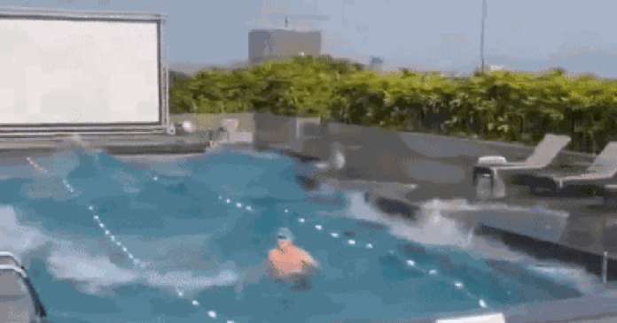 Um vídeo que viralizou nas redes sociais durante a madrugada desta quarta-feira (03) mostra um turista preso em uma piscina no terraço de um hotel em Taipei, Taiwan, no momento em que um terremoto de magnitude 7,2 atingiu o país.