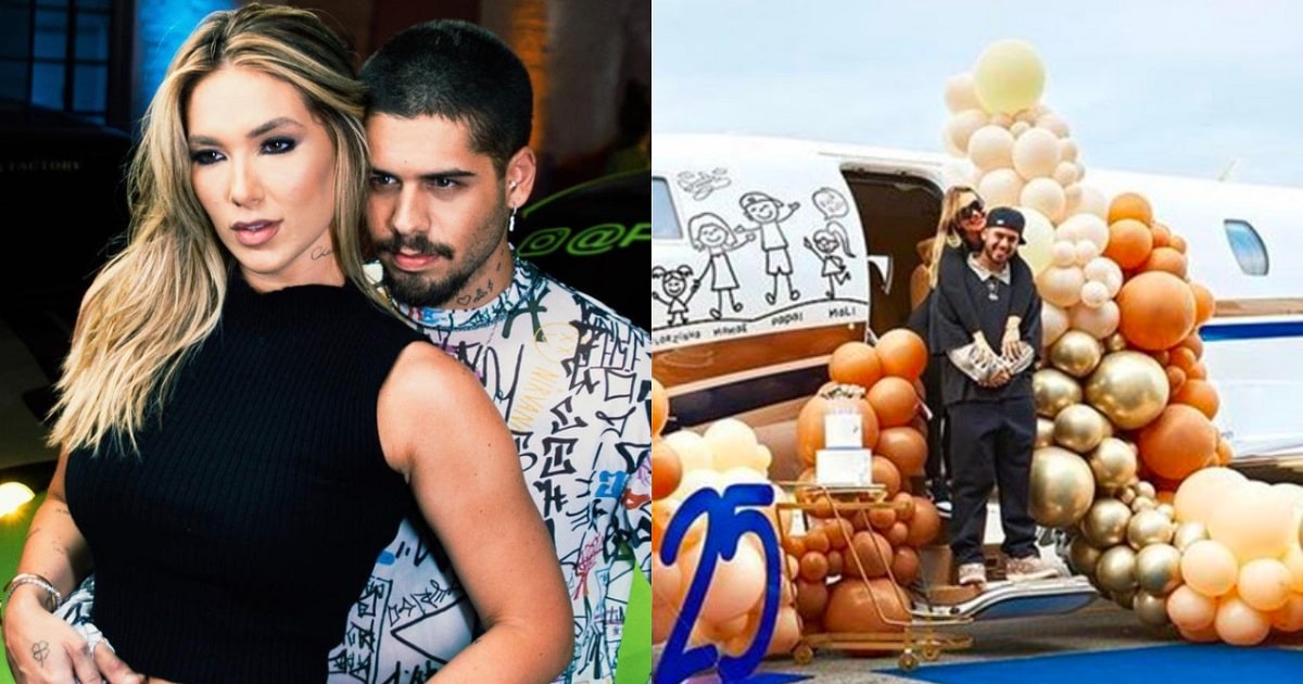 A pista do aeroporto foi adornada com balões, um bolo de aniversário de dois andares e letras gigantes com a inscrição “Zé Felipe 25”. Logo após, o casal embarcou com a equipe no avião e seguiu para Araxá, Minas Gerais, onde o cantor se apresentou.