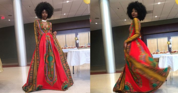 A garota, que mora em New Jersey, soltou toda a sua criatividade e, se inspirando em suas raízes africanas, desenhou um vestido deslumbrante e único, que deixou os seus colegas embasbacados. A peça foi confeccionada por uma costureira local, com base no esboço de Kyemah.