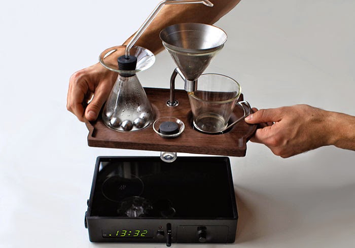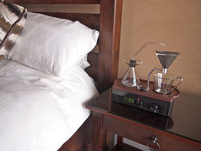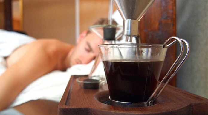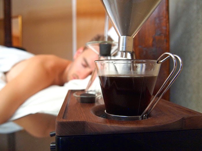 A máquina, além de lhe acordar, lhe serve uma xícara de café.