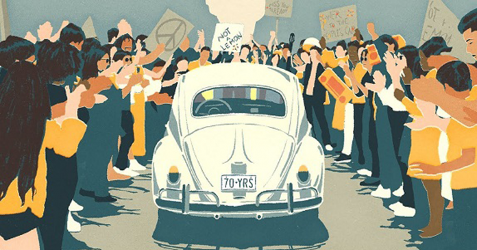 Para a homenagem, a Volks optou por uma animação que mostra todas as décadas vividas pelo carro e as mudanças culturais impregnadas nessa passagem de tempo