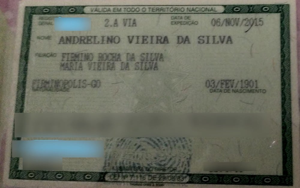 Andrelino nasceu no dia 3 de fevereiro de 1901, foi casado e teve sete filhos. Hoje, apenas cinco estão vivos, mas ele tem 13 netos, 16 bisnetos e um tataraneto.