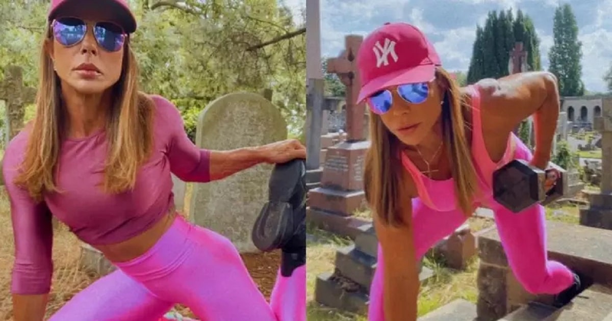 Vovó Fitness, a fisiculturista brasileira de 53 anos, cujo nome verdadeiro é Andrea Sunshine, tem dividido opiniões ao escolher um cenário peculiar para seus exercícios em Londres, na Inglaterra: um cemitério.