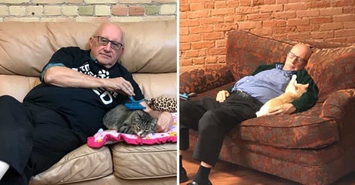 Dizem que os gatos costumam ser solitários e menos afetuosos do que outros animais, como cachorros, mas se há algo que eles adoram fazer e em que são especialistas é dormir e Terry Lauerman, um senhor aposentado, descobriu que isso bastaria para que ele não se sentisse sozinho.