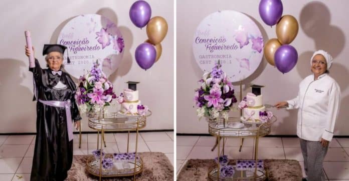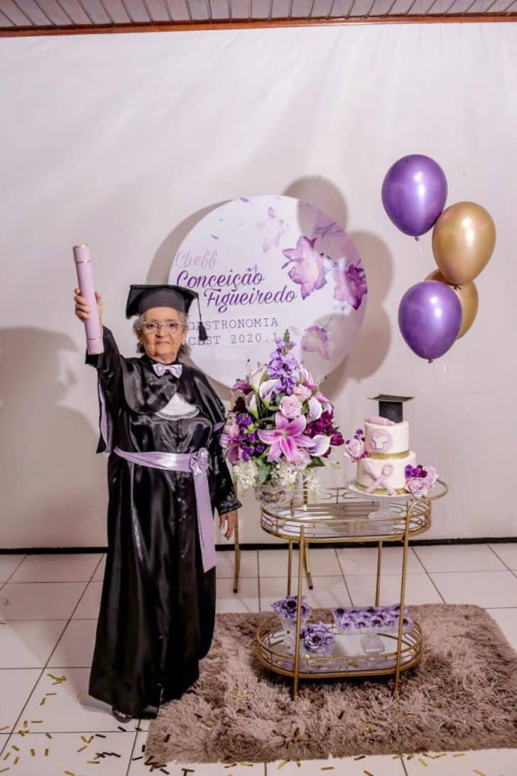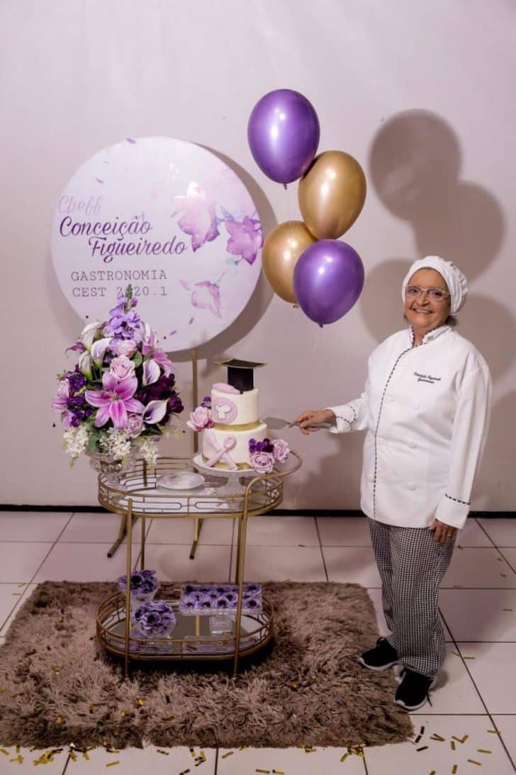 Maria Gonçalves Figuereido, aos seus 69 anos concluiu os estudos de Gastronomia. Para ela, isso foi mais do que um diploma de bacharel, foi a razão pela qual conseguiu sair de uma terrível depressão que comprometeu sua saúde.