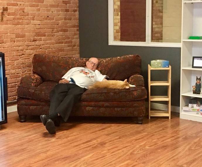 “Quase todos os dias, ele [Terry] acidentalmente cai no sono. Nós não ligamos – os gatos precisam disso. O Terry é um voluntário maravilhoso”, finalizou o abrigo.