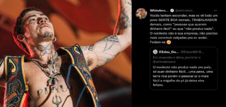 Whindersson, que nasceu no Piauí, não deixou barato e rebateu o comentário xenofóbico: