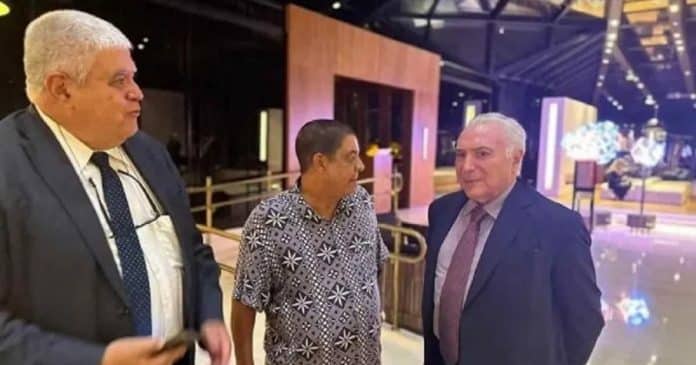 O ex-presidente Michel Temer (MDB) não se privou de tietar o sambista Zeca Pagodinho ao encontrá-lo em um evento empresarial em São Paulo; ele pediu para tirar uma foto com o sambista.